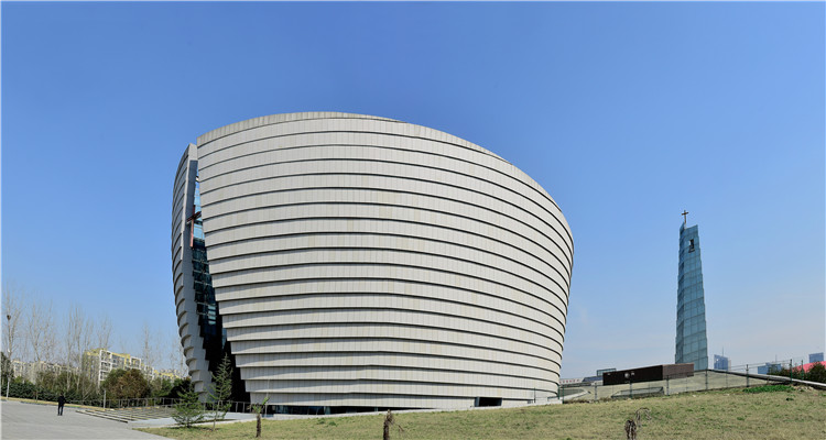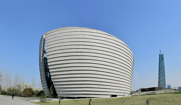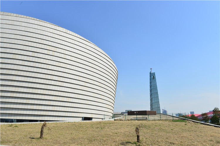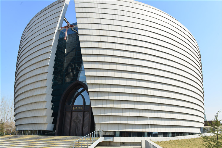 位于南京河西金陵圖書館北部,建筑面積1.3萬平方米,其中主堂建筑面積7063平方米。鋼結(jié)構(gòu)外圍護(hù)采用了旭建公司的125mm花紋板,6000平方的外立面呈倒錐體弧形造型,ALC板材的天然質(zhì)感與教堂的古樸氣質(zhì)渾為一體,莊嚴(yán)、神圣。圣訓(xùn)堂作為國際化大教堂成為國內(nèi)外基督徒宗教聚會、開展教職、人員培訓(xùn)和文化交流的重要場所,匹配了南京作為國際化大都市的宗教功能。