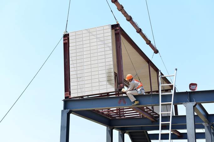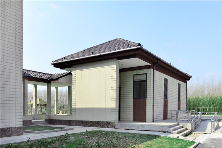江蘇省臨海高速鹽城大豐休息站位于江蘇大豐麋鹿國家級自然保護區(qū),保護區(qū)內(nèi)擁有多種國家一、二級保護動物。為維護自然保護區(qū)的生態(tài)環(huán)境,休息站主樓以及公共廁所決定采用具有綠色環(huán)保性能和產(chǎn)業(yè)化程度高的NALC工廠化預(yù)制成品房技術(shù)和工廠化單元房,一樓采用全干法預(yù)制鋼結(jié)構(gòu)體系和NALC板圍護技術(shù),所有結(jié)構(gòu)件和板材均定尺加工,在現(xiàn)場按圖組裝,施工便捷高效、保溫裝飾同步完成,產(chǎn)業(yè)化程度高。二層和公共衛(wèi)生間采用了NALC工廠化單元房技術(shù),圍護墻體采用的是具有保溫裝飾圍護一體化的綠色環(huán)保新型建材—NALC板材。